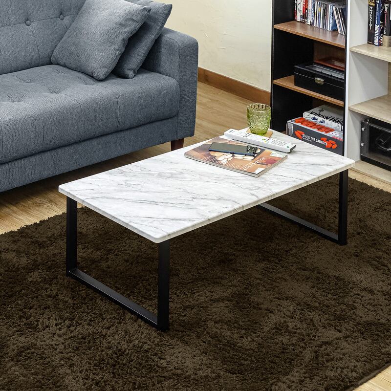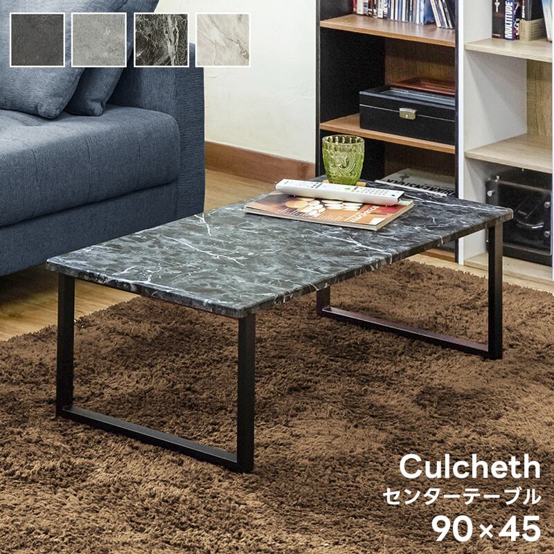 大理石柄やコンクリート柄の天板とスチール脚のシックなテーブルです