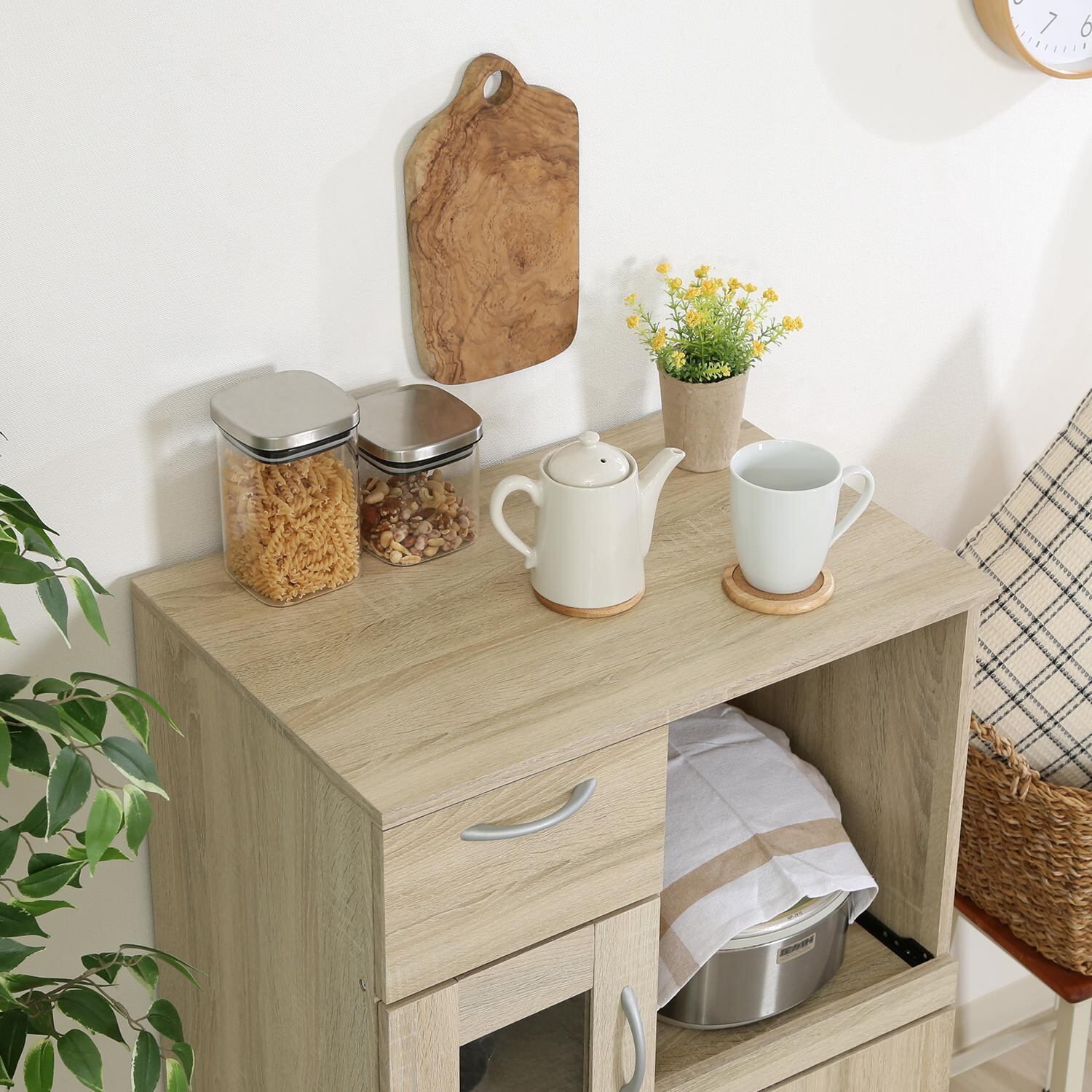 炊飯器やトースターなどのコードを通す穴があり、配線もラクラクです。