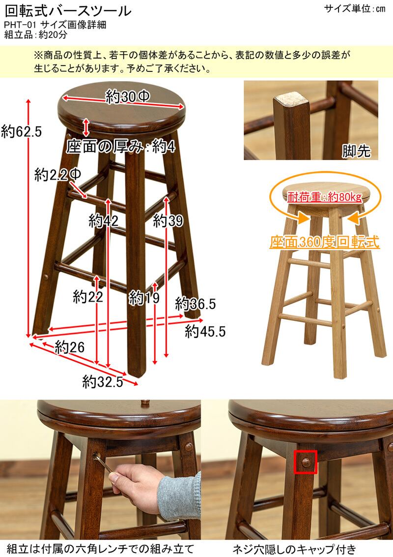 回転式バースツール BK/BR/NA/WH/BRBK/NAWH