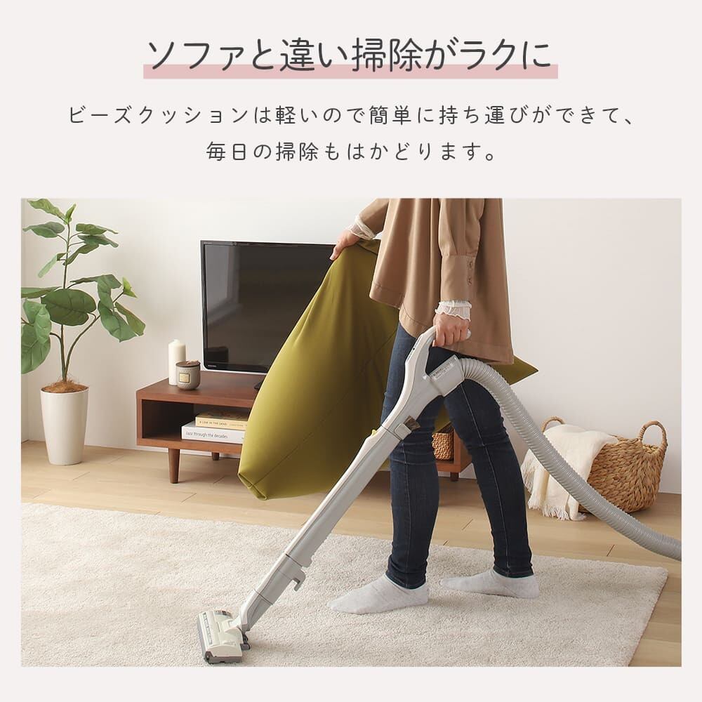 ※ビーズクッションですので流動性があります。お届け時は画像のような形状ではありません。ビーズを動かし整えることで画像のような形状になりやすくなります。